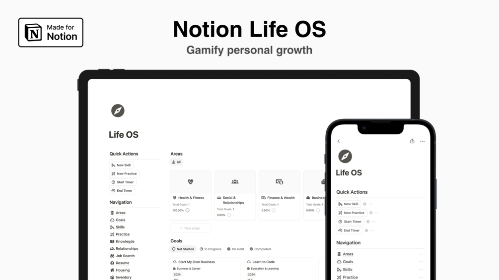 Notion Life OS is designed to enhance your personal and professional development by managing goals and gamifying skill progression while balancing all areas of your life. This template helps you stay organized and focused as you work toward meaningful growth.